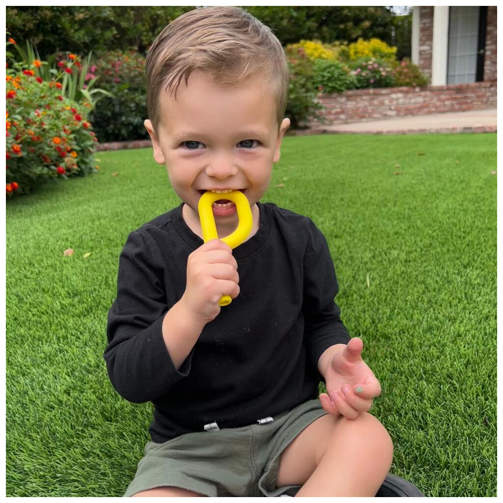 Der Grabber stärkt die Kiefermotorik, trainiert die Kau- und Beißbewegungen und unterstützt die Voraussetzung für eine gute Lautbildung. Einfache Handhabung für Kinder durch die Schlaufenform. Diese orale Erkundung bereitet sie darauf vor, später feste Nahrung zu essen und Sprachlaute zu erzeugen.