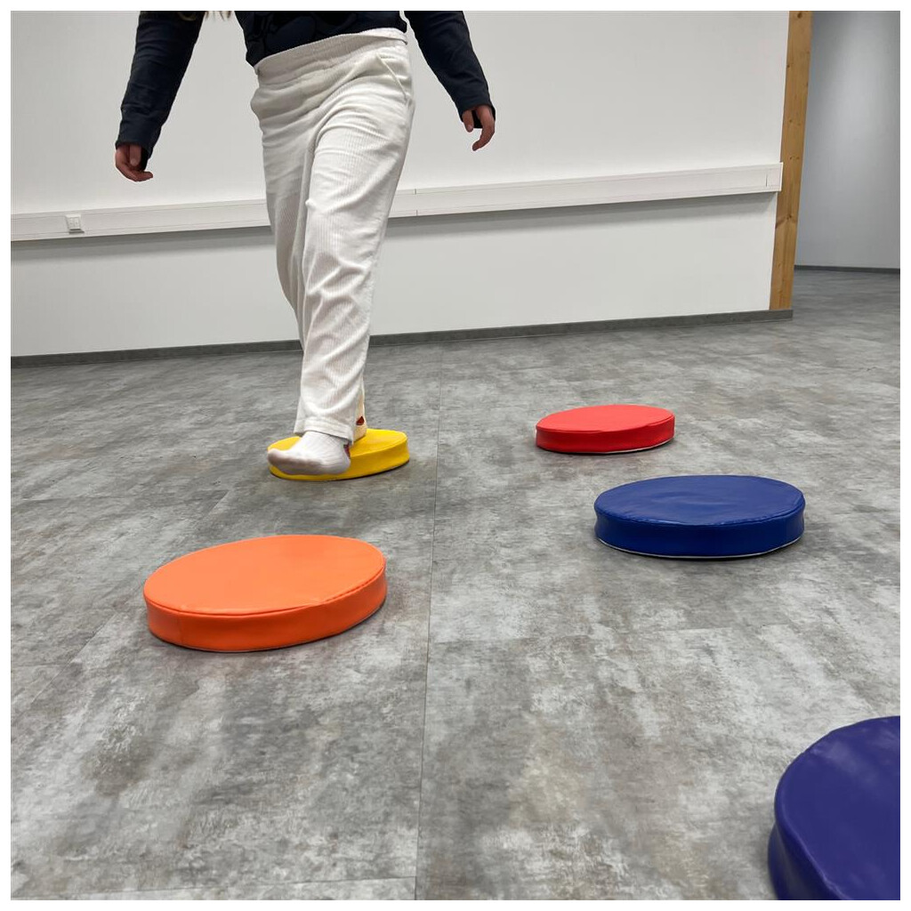 Diese Trittpads eignen sich perfekt für die propriozeptive und auditive Stimulation. Indem sie den Gleichgewichtssinn ansprechen, helfen sie dabei, das Körperbewusstsein zu verbessern und Schwerkraftunsicherheiten zu überwinden. Kinder können spielerisch ihr Gleichgewicht trainieren und ihre Koordination und Stabilität weiterentwickeln.