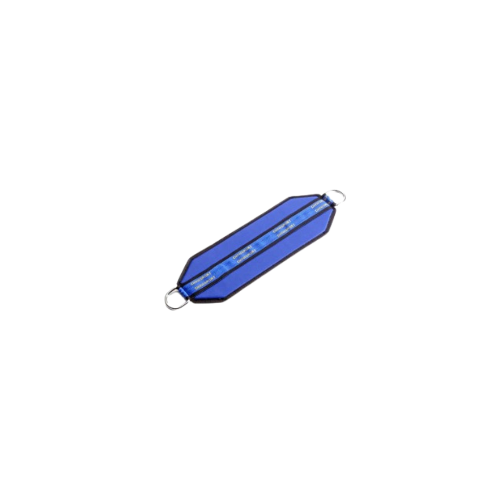 Die Schlinge besteht aus einem bequemen Gurt, der mit schwarzer Kunstlederpolsterung versehen ist, und hat an beiden Enden verchromte Ringe (Ø 35 mm). Diese Ringe ermöglichen eine sichere Befestigung an Rahmenstrukturen, Seilzügen oder Schlingensystemen. Das Material ist leicht zu reinigen und für den hygienischen Dauergebrauch konzipiert – perfekt für den Einsatz in Praxen und im Reha-Alltag.