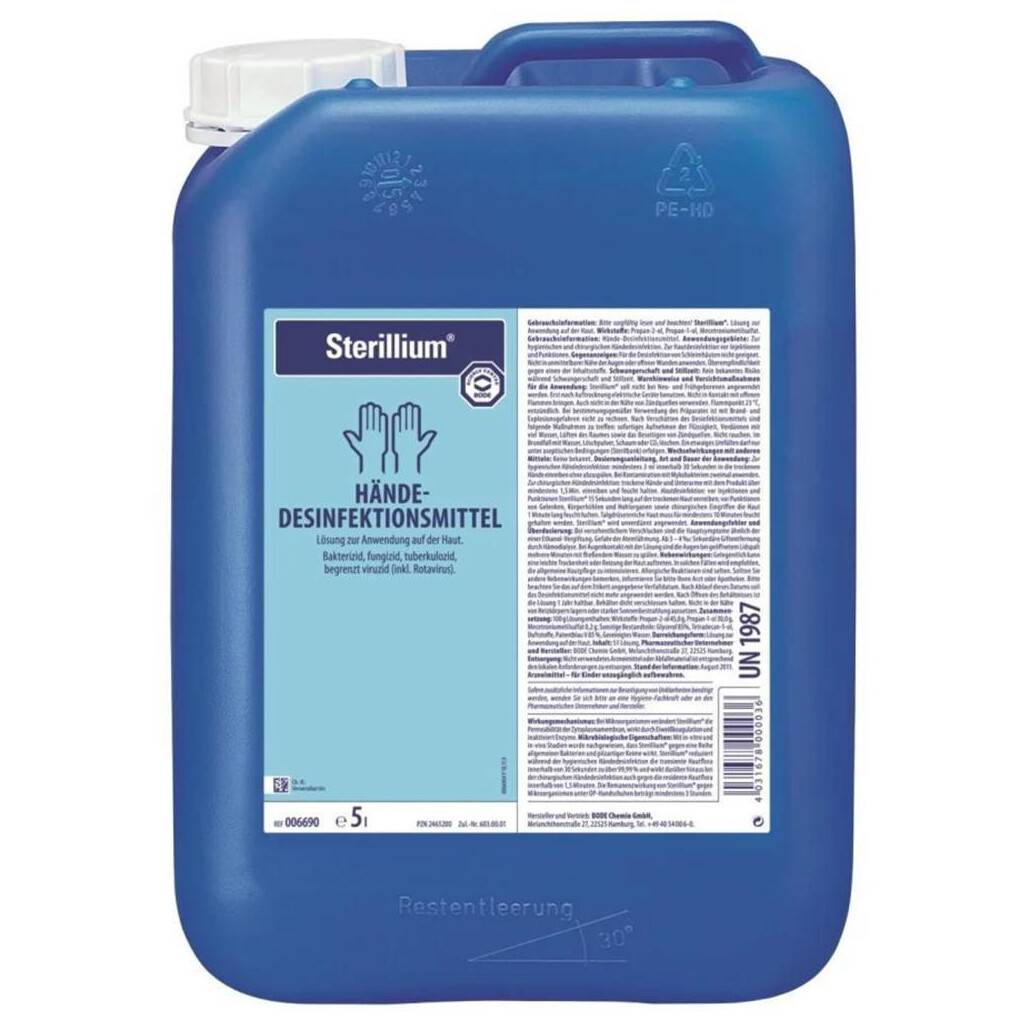 Die Händedesinfektion dient der gezielten Vermeidung einer Infektionsübertragung z. B. in der Krankenpflege. Sterillium® classic pure soll nicht bei Neu- und Frühgeborenen angewendet werden. Die Anwendung bei Säuglingen und Klein-kindern soll erst nach ärztlicher Rücksprache erfolgen. Ein Kontakt der Lösung mit den Augen muss vermieden werden. Wenn die Augen mit der Lösung in Berührung gekommen sind, sind sie bei geöffnetem Lidspalt mehrere Minuten mit fließendem Wasser zu spülen. Ein Umfüllen von einem Behältnis in ein anderes soll vermieden werden um eine Kontamination der Lösung zu vermeiden. Wenn Umfüllen unvermeidbar ist, darf es nur unter aseptischen Bedingungen (z. B. Benutzung von sterilen Behältnissen unter Laminar Air Flow) erfolgen. Erst nach Auftrocknung elektrische Geräte benutzen. Nicht in Kontakt mit offenen Flammen bringen. Auch nicht in der Nähe von Zündquellen verwenden. Flammpunkt 23 °C, entzündlich. Bei bestimmungsgemäßer Verwendung des Präparates ist mit Brand- und Explosionsgefahren nicht zu rechnen. Nach Verschütten des Desinfektionsmittels sind folgende Maßnahmen zu treffen: sofortiges Aufnehmen der Flüssigkeit, Verdünnen mit viel Wasser, Lüften des Raumes sowie das Beseitigen von Zündquellen. Nicht rauchen. Im Brandfall mit Wasser, Löschpulver, Schaum oder CO2 löschen.