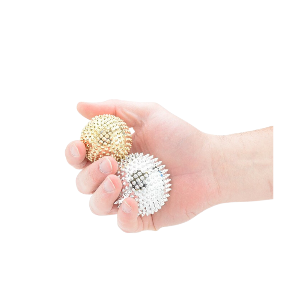 Im Set enthalten sind zwei magnetische Massagekugel in gold oder silber. Die spitzen Stacheln setzen angenehme Reize auf Ihrer Haut, ohne sie dabei zu verletzen. Die harten Kugeln halten auch größerem Druck stand und eignen sich somit hervorragend für Wellnessmassagen oder Reflexzonenmassagen an den Händen und Füßen.