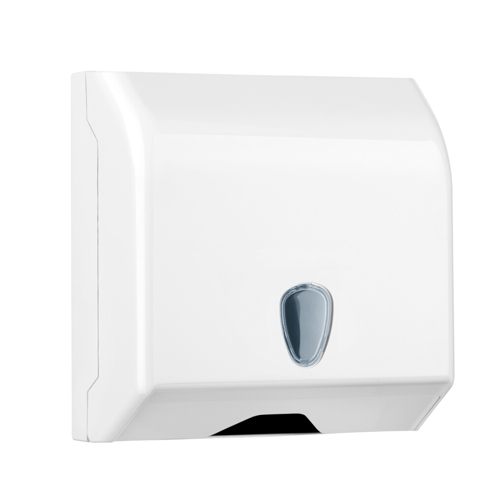 Der abschließbare Falthandtuchspender eignet sich zur berührungslosen Entnahme der Falthandtücher.