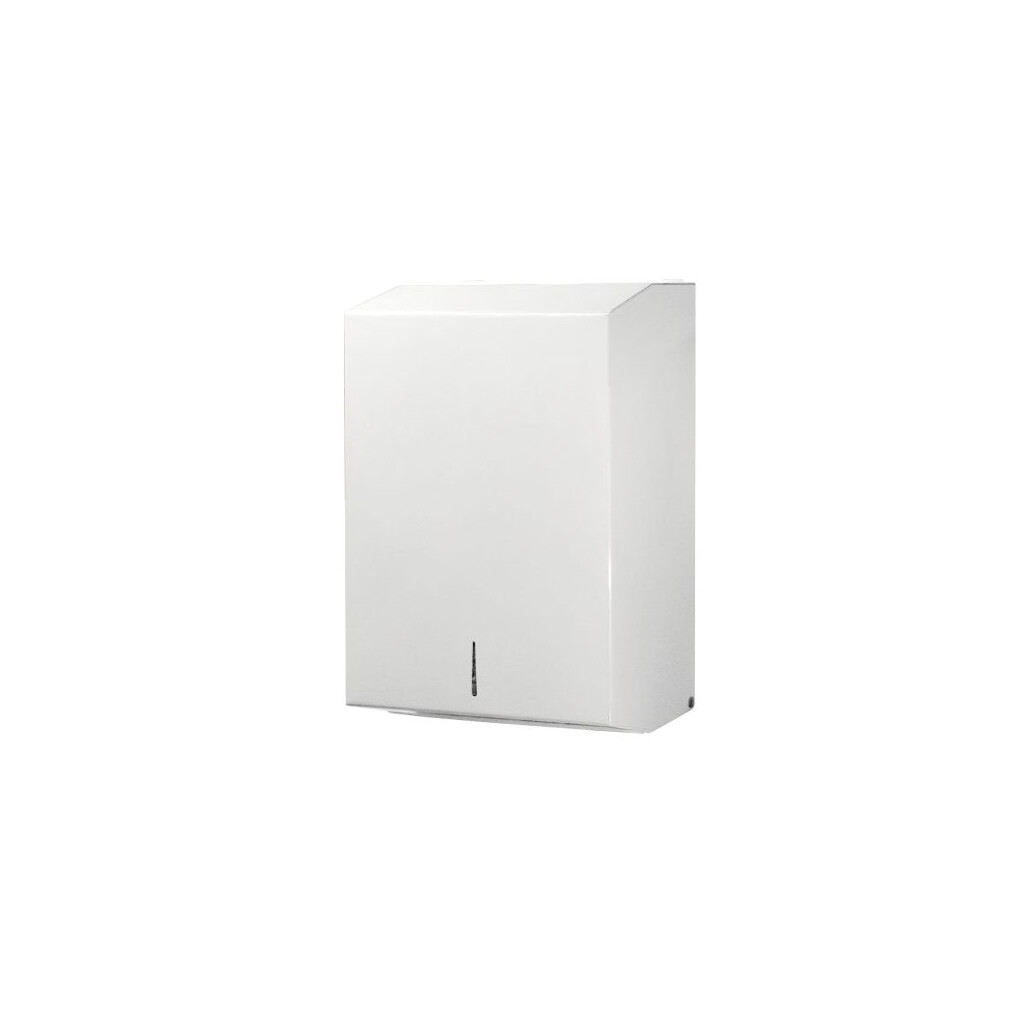 Der abschließbare Falthandtuch Spender ist aus weiß lackiertem Metall gefertigt. Er verfügt über eine Füllstandanzeige und ein Zylinderschloss. Racon MW L eignet sich für alle marküblichen Falthandtücher in ZZ-Falz, Lagenfalz und Interfold. Das Fassungsvermögen beträgt 400-800 Tücher.
