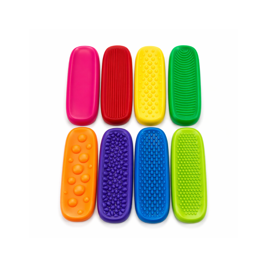 Die Sensory Boards aus Silikon sind kompakte sensorische Elemente, die im Bereich Sensorik und taktile Wahrnehmung eingesetzt werden können. Das Set besteht aus 8 unterschiedlich gestalteten Boards mit verschiedenen Oberflächenstrukturen und Farben. Die Sensory Boards sind für Kinder ab 3 Jahren geeignet und können in unterschiedlichen Anwendungssituationen integriert werden.