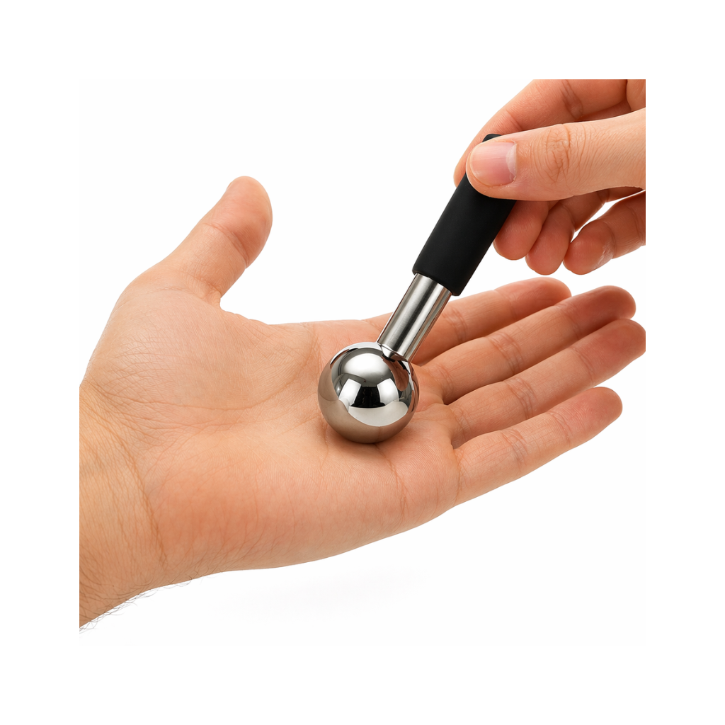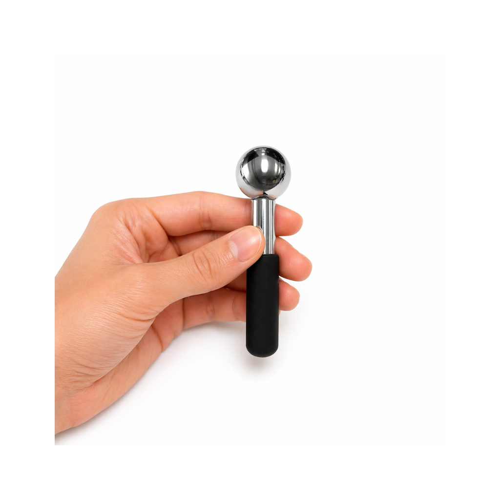 Der Eismassagestab kann als unterstützendes Hilfsmittel für manuelle Anwendungen auf der Haut eingesetzt werden. Durch die Temperaturübertragung der Kugel ist eine Nutzung im gekühlten oder erwärmten Zustand möglich.