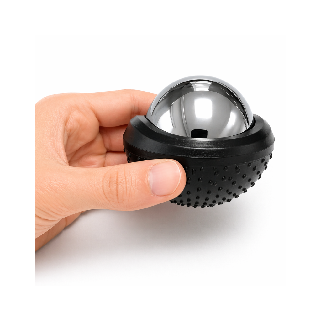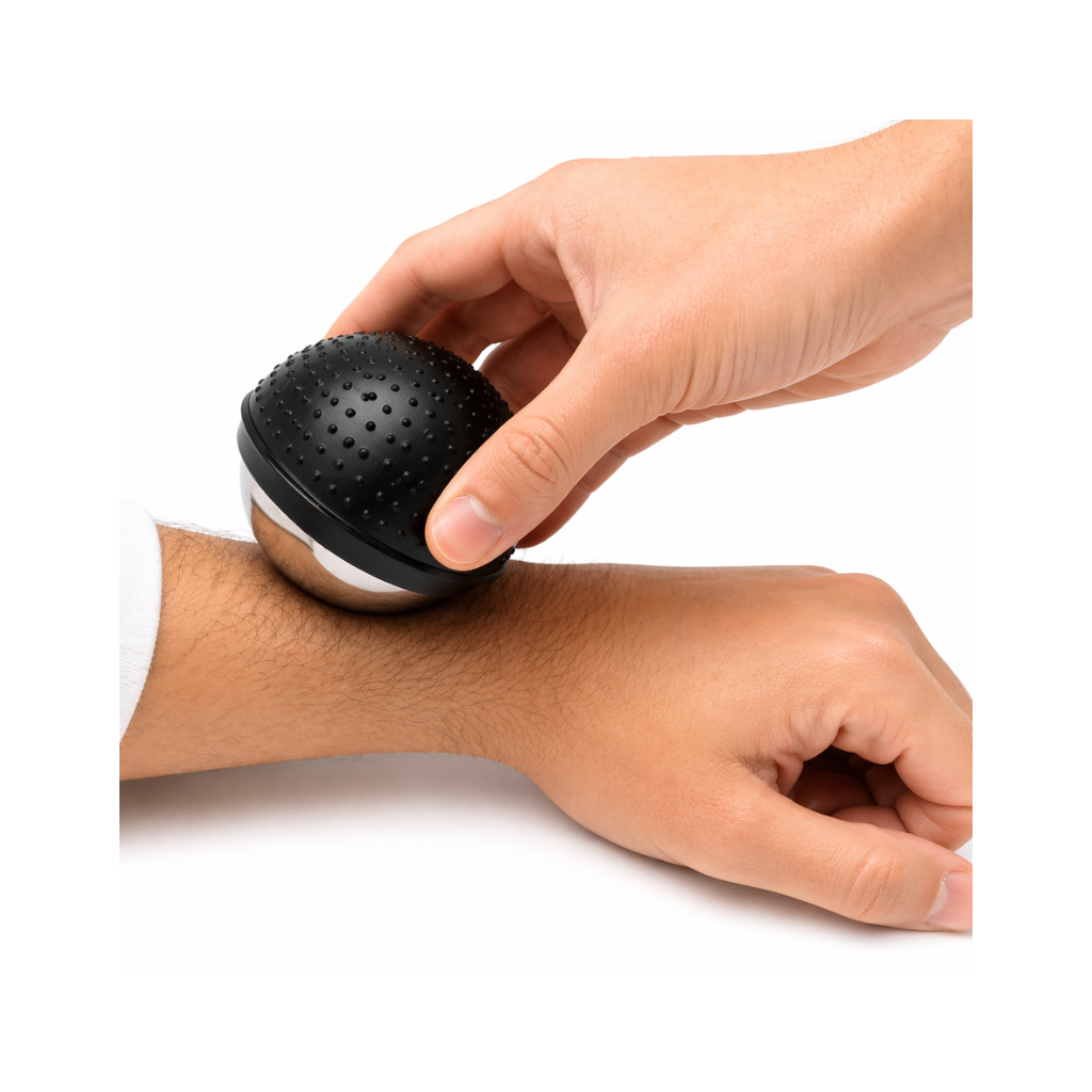 Die rotierende Edelstahlkugel unterstützt eine gleichmäßige Bewegung über die Haut. Das Produkt ist für die manuelle Anwendung vorgesehen und kann in unterschiedliche Nutzungssituationen integriert werden.
