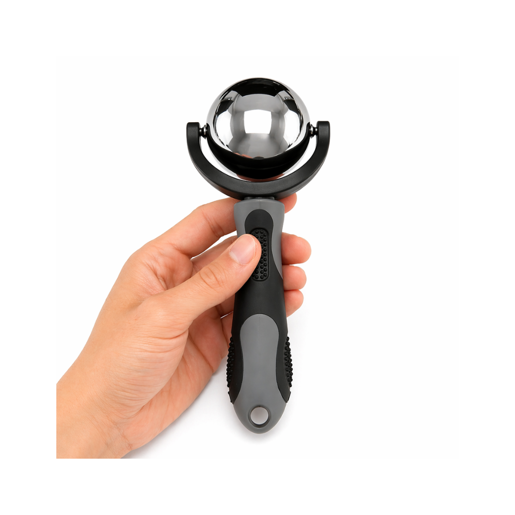 Die rollende Edelstahlfläche unterstützt eine gleichmäßige Bewegung über die gewünschte Hautfläche. Das Produkt ist für die manuelle Anwendung vorgesehen und kann in unterschiedliche Anwendungsroutinen integriert werden.