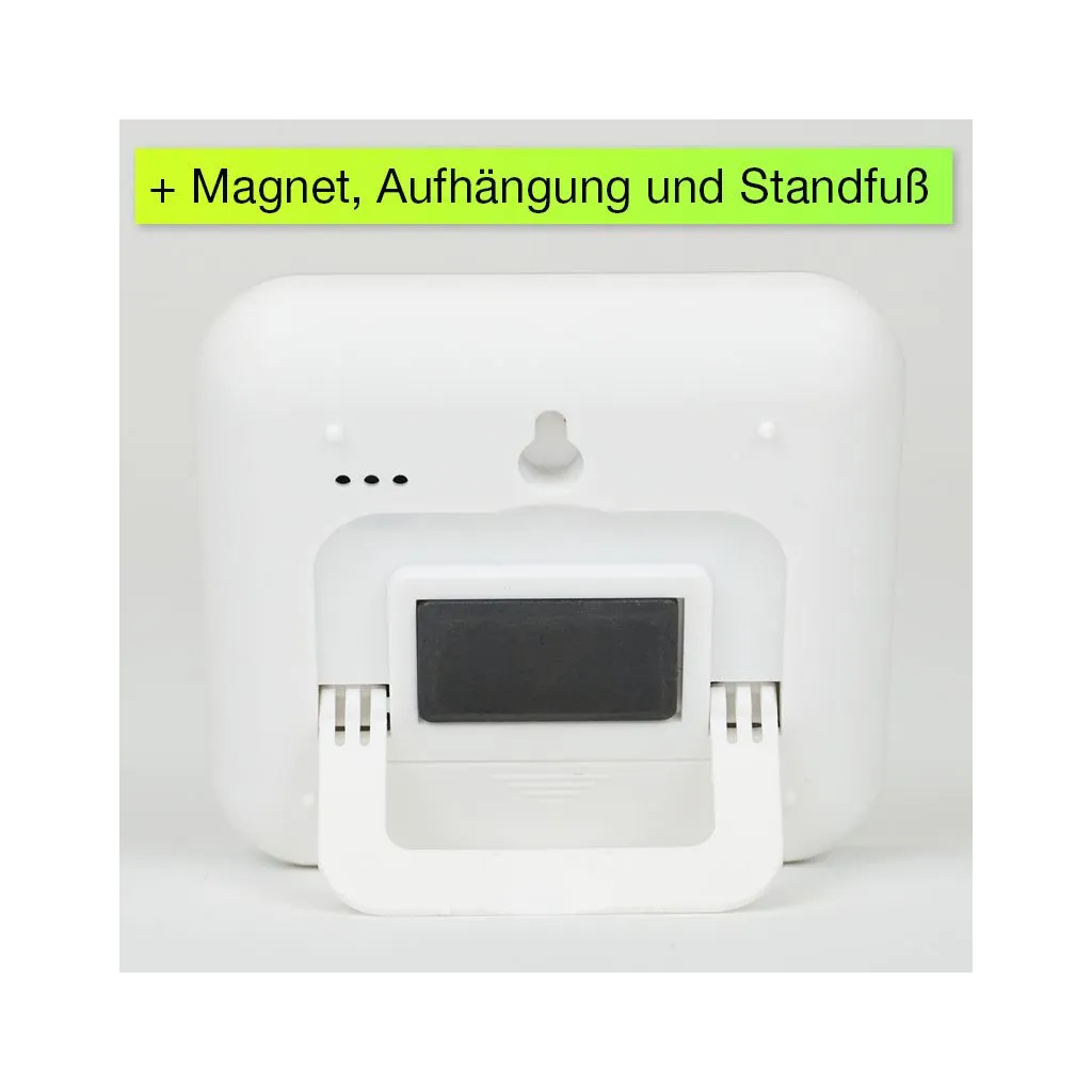 Für Flexibilität im Alltag lässt sich die Zeitdauer-Uhr stellen, an der Wand befestigen oder magnetisch an Whiteboards anbringen. Die Batterie sorgt für lautlosen Betrieb – ganz ohne störende Tickergeräusche.