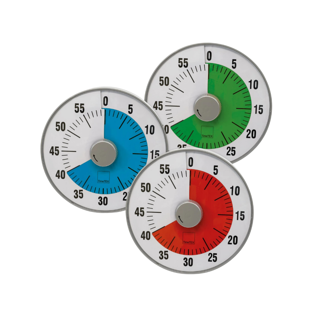 Die TimeTEX Zeitdauer-Uhr „lautlos“ L mit einem Durchmesser von 19 cm bietet eine besonders große, visuelle Darstellung von Restzeiten – ideal für den Einsatz im Klassenzimmer, bei Gruppenarbeiten oder strukturierten Lernumgebungen. Die farbige Zeitscheibe läuft rückwärts, das vertraute Ziffernblatt erleichtert die Orientierung. Zum Ablauf ertönt ein Signal, das in Lautstärke und Modus (laut, leise oder lautlos) individuell eingestellt werden kann. Bei uns erhältlich in den Farben Blau, Grün und Rot.